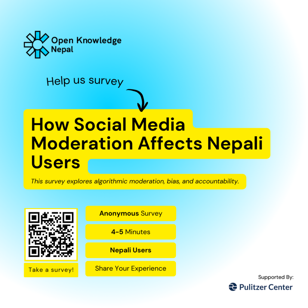 If you use social media or have ever experienced content removal, account restrictions, or algorithmic bias on social media platforms, we want to hear your story. Your experiences will help us understand the real-world impact of algorithmic moderation in Nepal and inform our advocacy for more transparent and fair systems.